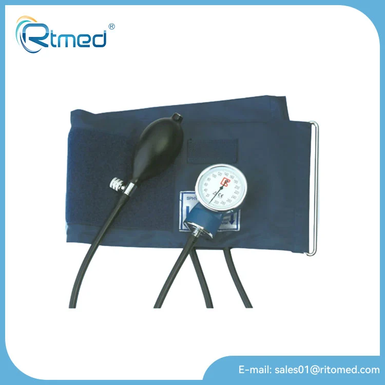 Deze RTMED Euro-type aneroïde bloeddrukmeter is een handmatig apparaat voor het meten van de bloeddruk dat gebruik maakt van een meetklok (manometer) om de druk weer te geven, in plaats van een kwikkolom of een digitaal scherm.